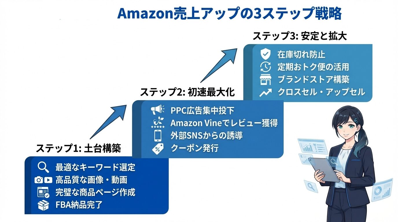 - Amazon Vine先取りプログラム: 初期レビューの獲得に必須。