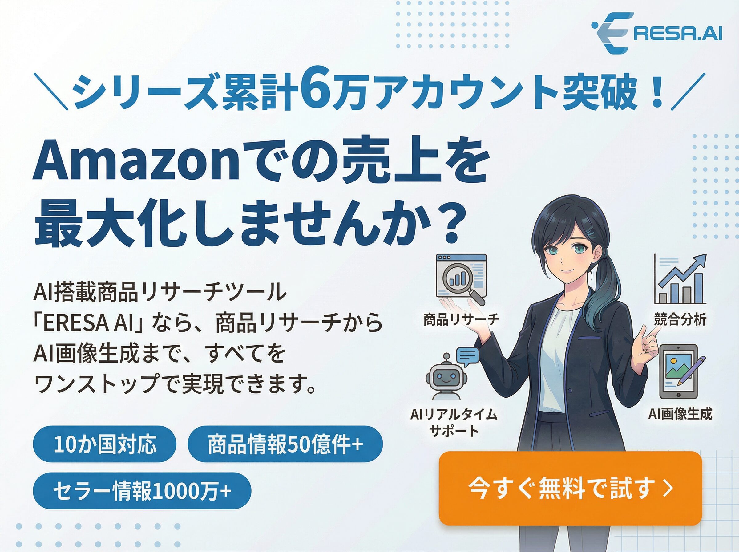 ERESA(イーリサ)の累計ユーザー数が35,000人突破しました。 2023 3/23 ニュース 2023年3月1日2023年3月23日 ERESAの累計ユーザー数が35,000人を突破したことをご報告します。 ニュース URLをコピーしました! ERESA Inc.は、米国市場向けにAmazonで販売されている13億以上の商品のリサーチや分析が行える「ERESA」を2023年2月14日より無料提供を開始しました。 EC業界初!ChatGPTを含むAI技術でAmazon商品のデータ分析& 仕入れ判断作業の効率化を実現する「ERESA PRO 2.0」をリリースしました。 関連記事 2024年度「IT導入補助金制度」対象サービスに認定されました 2024年7月23日 株式会社イーリサ、久保建英選手が所属するスペインクラブ、レアル・ソシエダ ジャパンツアー2024 公式スポンサー就任のお知らせ 2024年5月20日 NOVASTO社よりAmazon販売総合管理ツール 「D-plus(ディープラス)」を12月1日(金)付けで事業譲受 2023年12月8日 ERESA(イーリサ)の累計ユーザー数が45,000人突破しました。 2023年11月1日 出版事業開始のお知らせ 2023年7月4日 本社移転のお知らせ 2023年6月15日 EC業界初!ChatGPTを含むAI技術でAmazon商品のデータ分析& 仕入れ判断作業の効率化を実現する「ERESA PRO 2.0」をリリースしました。 2023年4月1日 新会社設立及び事業譲受に関するお知らせ 2021年3月22日